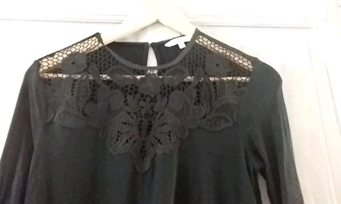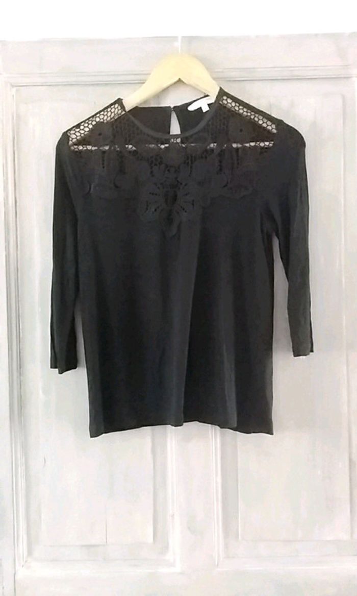 Tee-shirt manches 3/4, de couleur noir. Dentelle transparente sur le haut du tee-shirt Taille M CLOCKHOUSE #popo85290_38_m