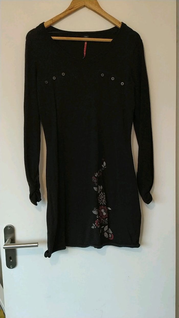 Robe, couleur noir avec motifs. Matière laine Taille 2 TERRE DE MARINS Très bon état #popo85290_38_m #terredemarins