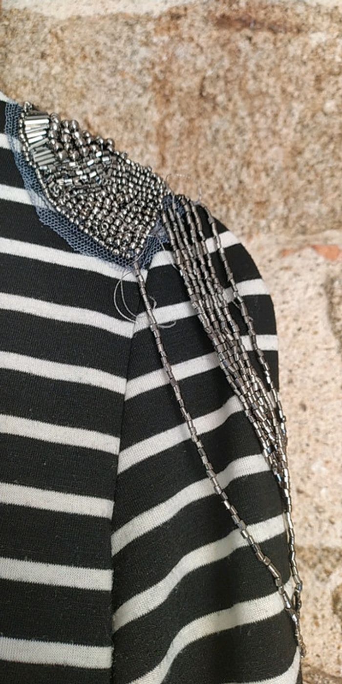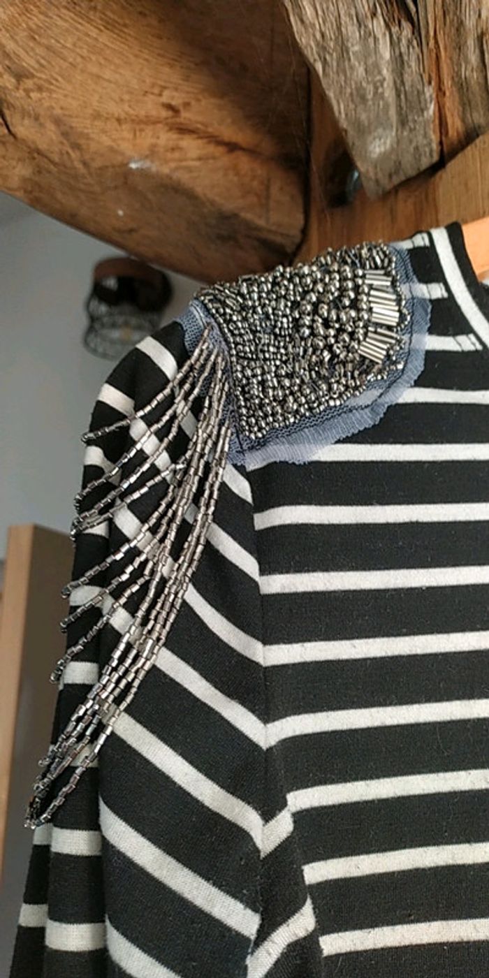 Tee-shirt manches longues, couleurs noir et blanc avec décorations perles sur les épaules Taille M JENNYFER État satisfaisant (pas mal de perles parties sur l'épaule gauche) #popo85290_38_m #jennyfer #teeshirt38 #jennyfer38 #jennyferm