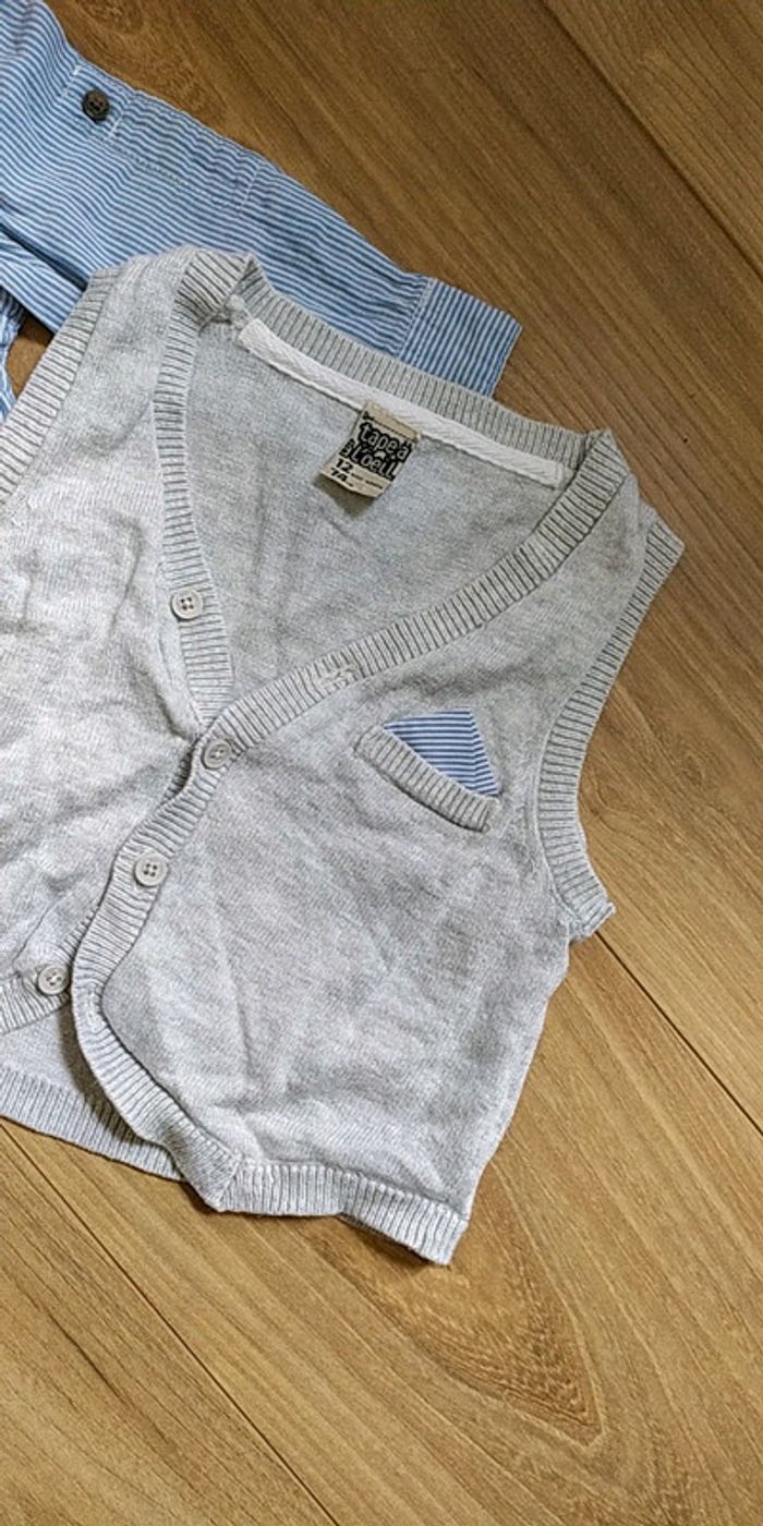 Ensemble chemise + boléro, tons gris et bleu Taille 1 an (74cm) TAPE À L'OEIL Très bon état #popo85290_1an #popo85290_12mois #tao #tao1angarcon