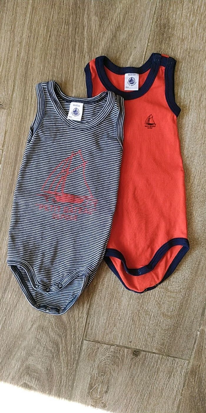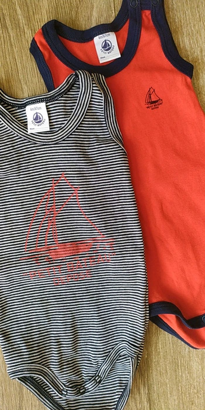 Lot de 2 bodies marcel Taille 6 mois (67cm) PETIT BATEAU Très bon état #popo85290_6mois #petitbateau #petitbateau6mois #body6mois #6moisgarçon