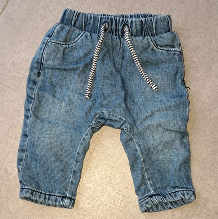 Jeans à taille élastique avec ceinture de serrage interne en taille 3 mois. De la marque Tape à l'œil. En très bon état.