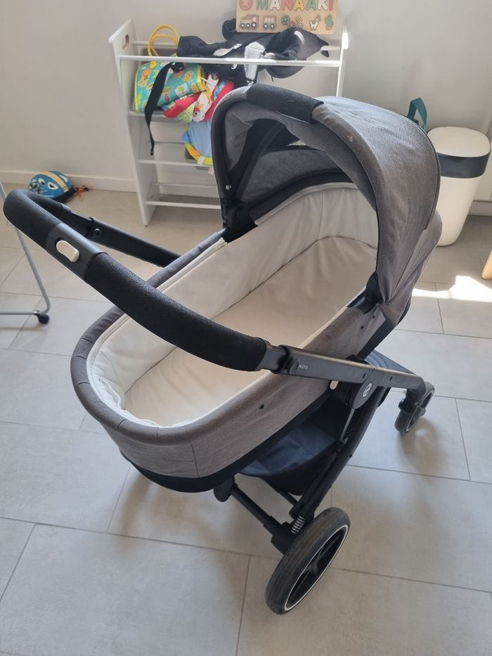 Poussette trio. Inclus le châssis, l'assise, la nacelle, le siège auto et les adaptateurs siège auto/châssis. Bon état. Elle n'a servi qu'un an, on s'en sépare pour un modèle plus compact. Le châssis à quelques rayures car la poussette a prit l'avion plusieurs fois mais cela n'altère en rien son utilisation. Si questions, n'hésitez pas à me contacter. Prix négociable.