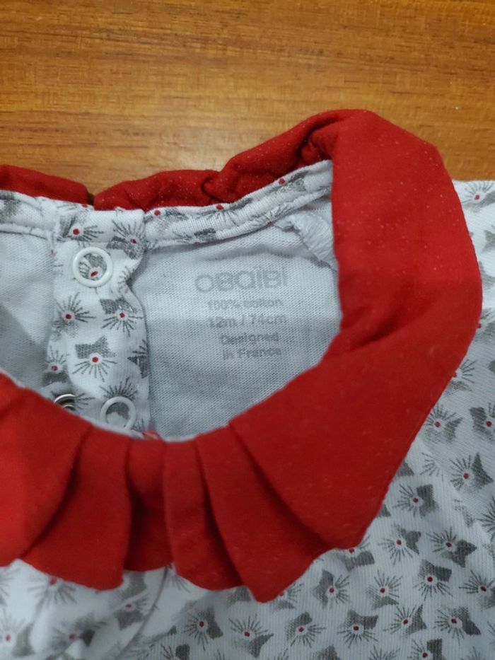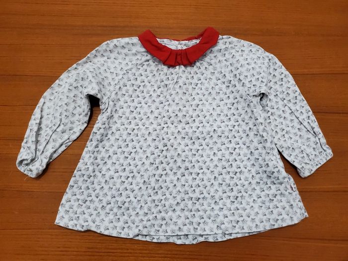 Bonjour. Je vends ce joli t-shirt avec son col rouge. En très bon état. Petits prix et réductions dans mon dressing 🙂 #lefeuvrejofille12mois