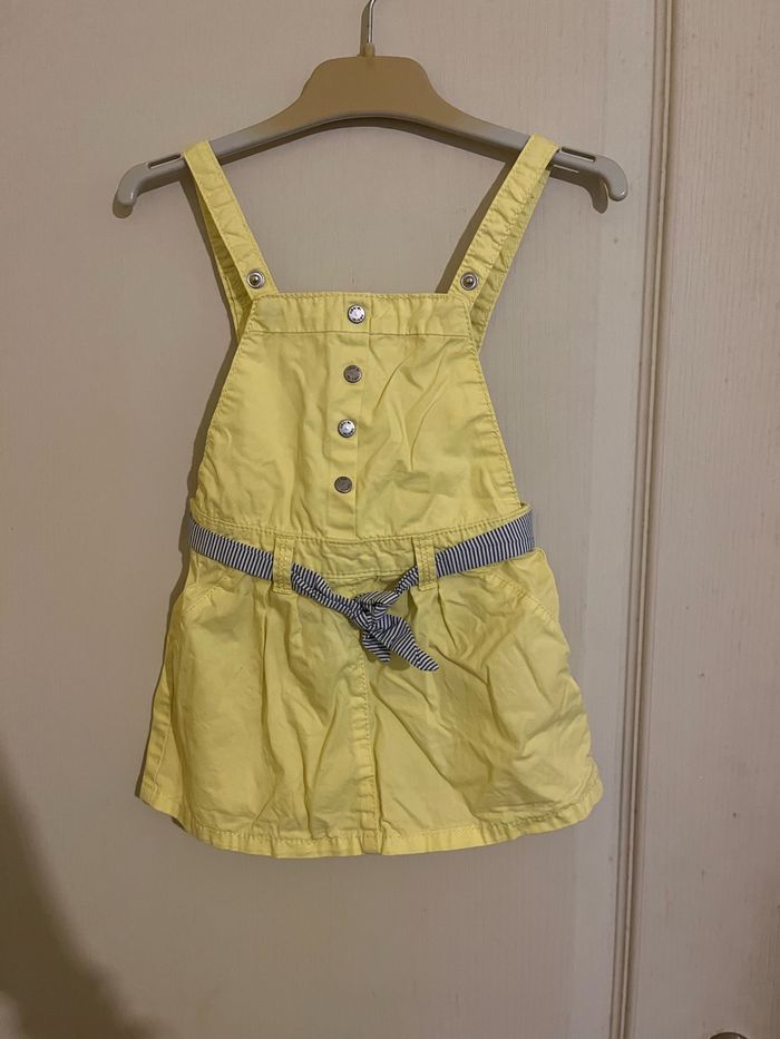 Vends robe jaune avec ceinture rayée en très bon état. Taille 12mois