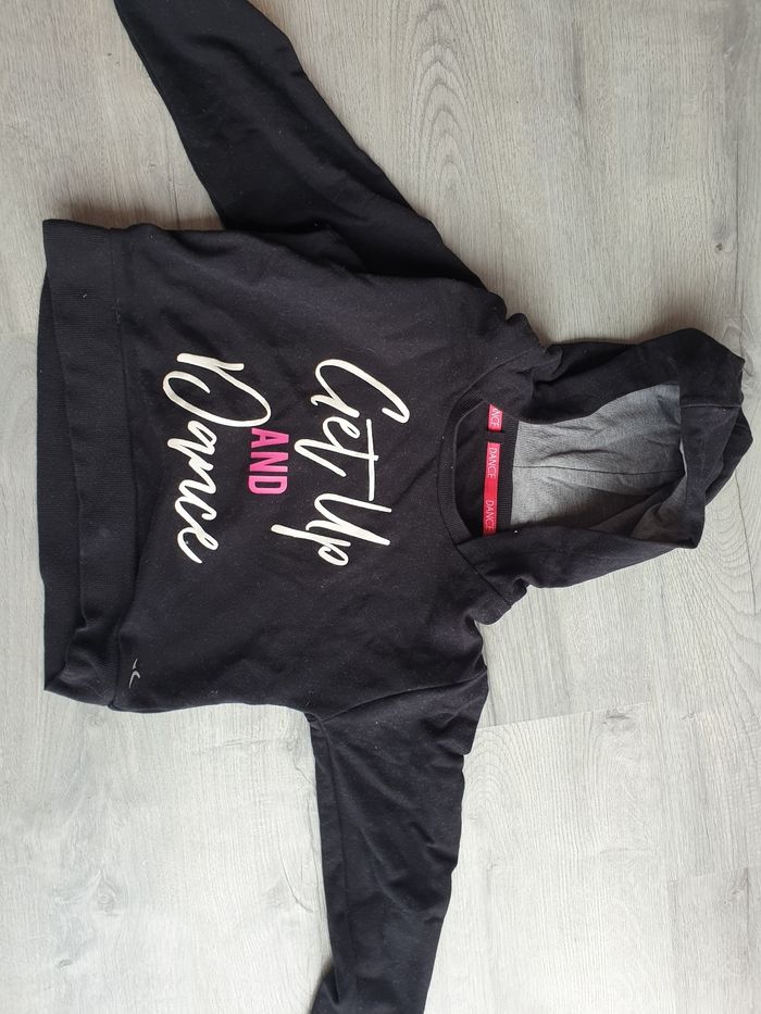 Pull fille arrive au niveau du nombril. Taille 6 ans.