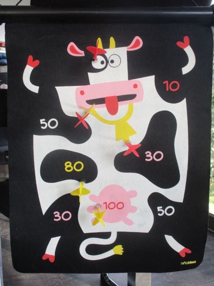 Se joue avec des fléchettes aimantées, idéal pour les petits ! Comprend 6 fléchettes (3 rouges, 3 jaunes) et comporte deux côtés. #jeuxjouetskarantho