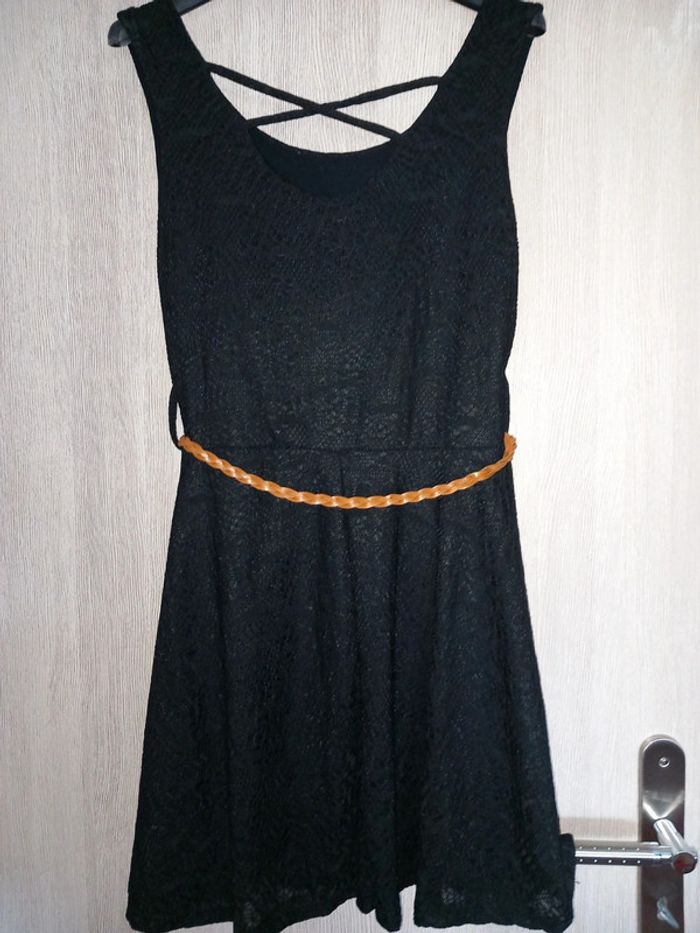 Jolie robe noire avec lien à la taille et dos croisé - photo numéro 1