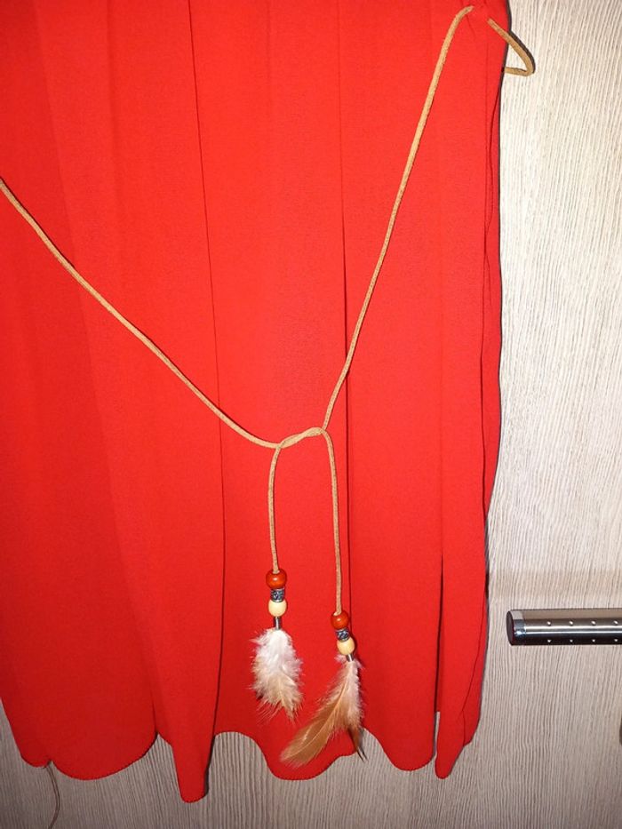 Jolie robe rouge avec ceinture à plumes - photo numéro 1