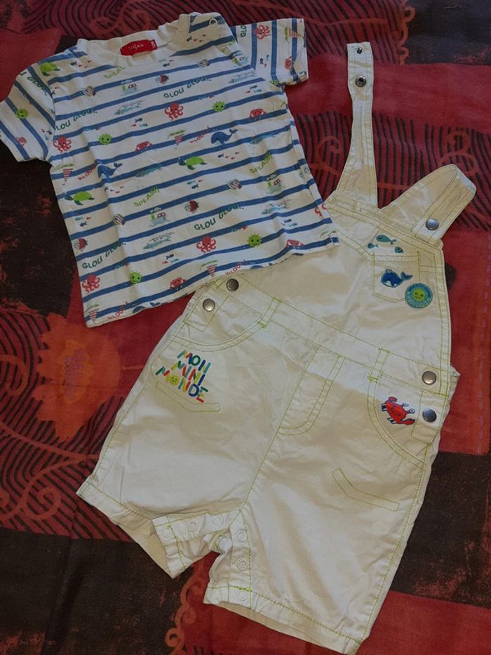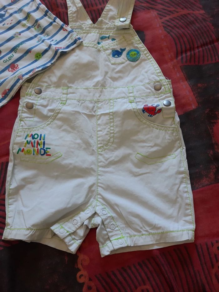 Ensemble marin salopette short + tee-shirt 12mois - photo numéro 1