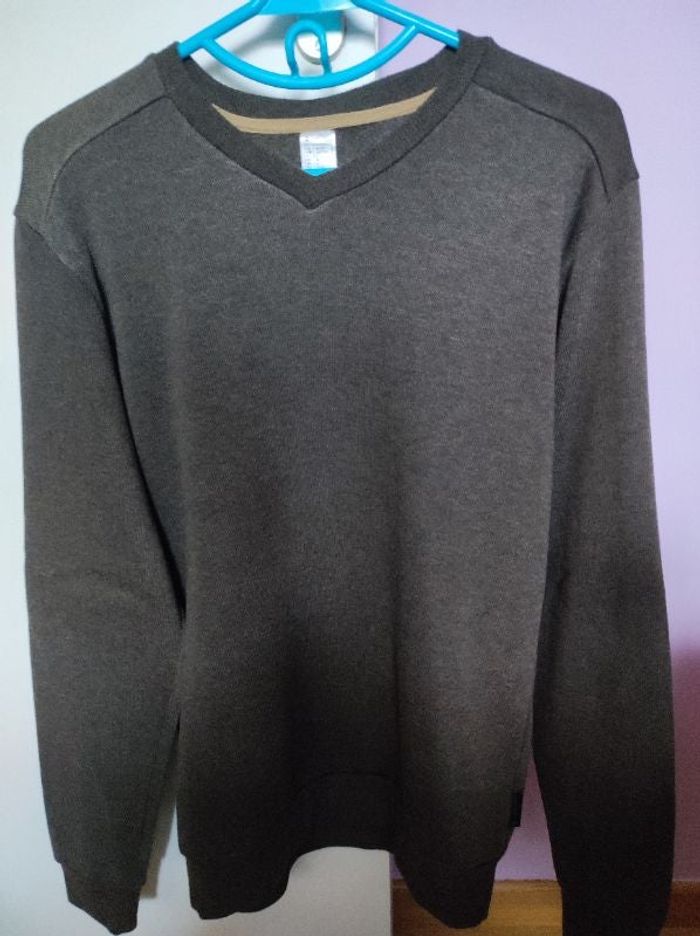 Pull homme en bon état dans la rubrique taille il est noté L en 42 moi je dirais plus un taille 40 derrière de la manche protégé voir photo