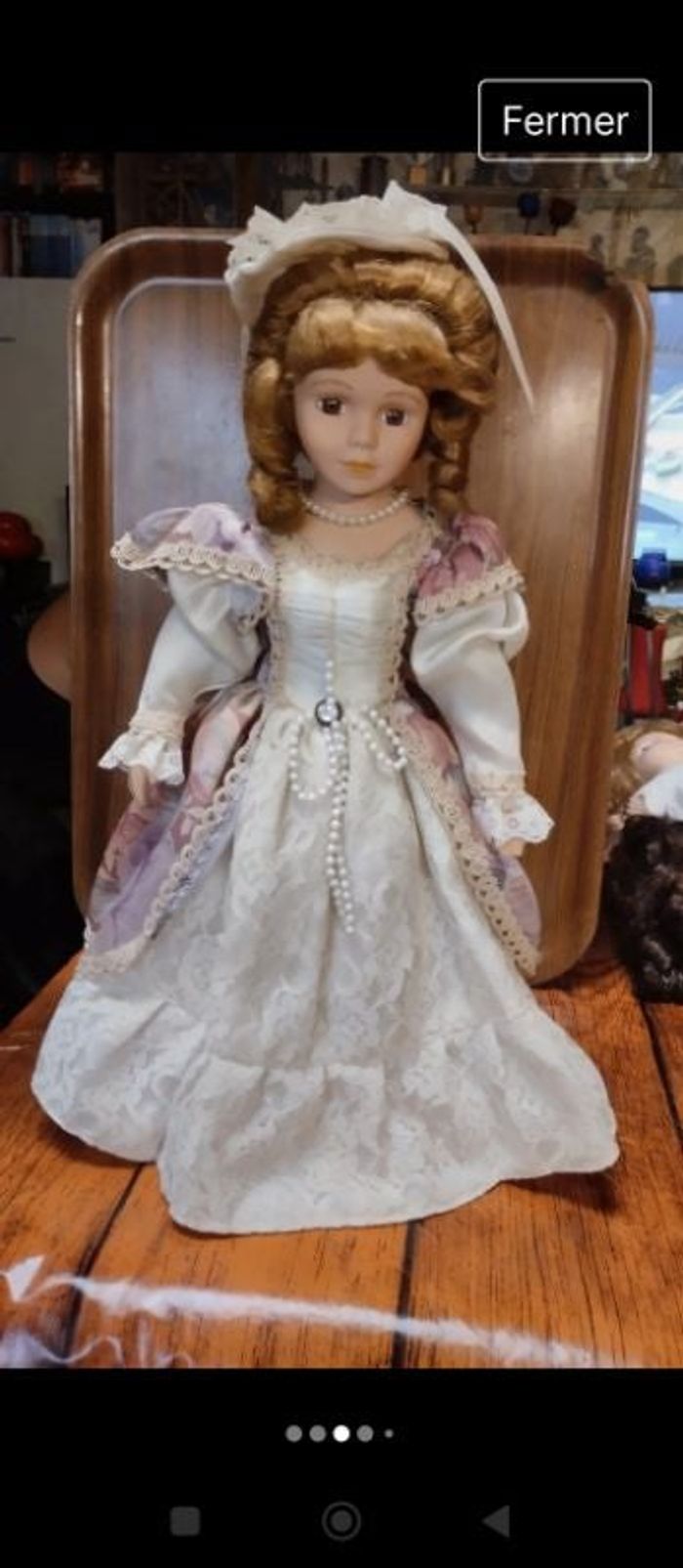 Poupée porcelaine rousse 46 cm fournie avec son pied