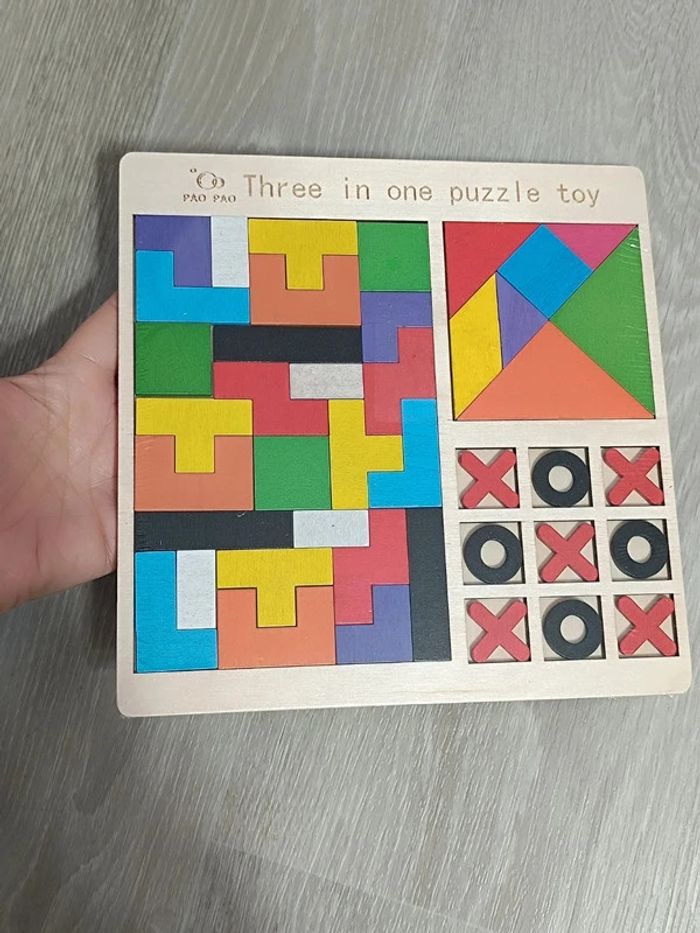 📍Jeu 3 en 1 en bois. 👉 Tétris. 👉Tangram 👉Morpion. 📍Neuf! 👉Pour trouver d'autres activités c'est par ici : 🔎#elisabethdesignJeuenBois 📫⏳ Envoi rapide et soigné le jour même de l'achat dans la mesure du possible! 🤝 Frais de port ajusté au plus bas.