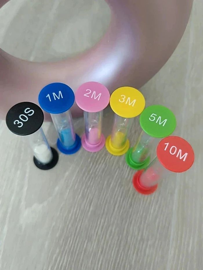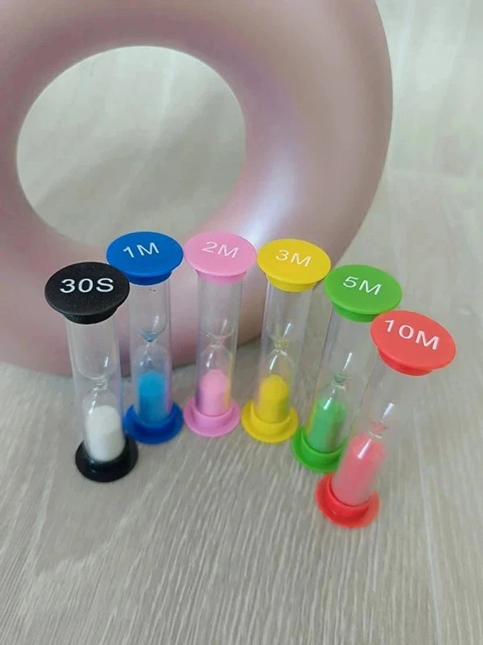 📍Articles neufs. 👉Lot de 6 sabliers. - 30 sec - 1 min - 2 min - 3 min - 5 min - 10 min Objectifs : 📍Fonder une notion dans le temps 📍Avoir un visuel sur le temps 📍Mesurer le temps que dure une action/une activité 📍Mesurer le temps pendant un retour au calme 👉Pour trouver d'autres activités c'est par ici : 🔎 #elisabethdesignNotionDuTemps 📫⏳ Envoi rapide et soigné le jour même de l'achat dans la mesure du possible ! 🤝 Frais de port ajusté au plus bas.