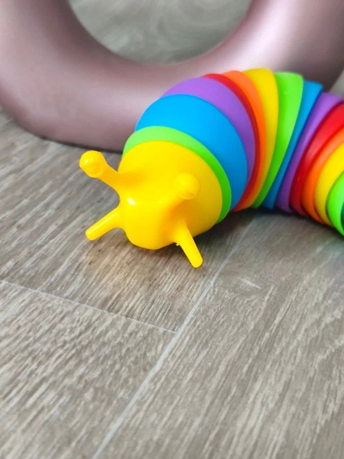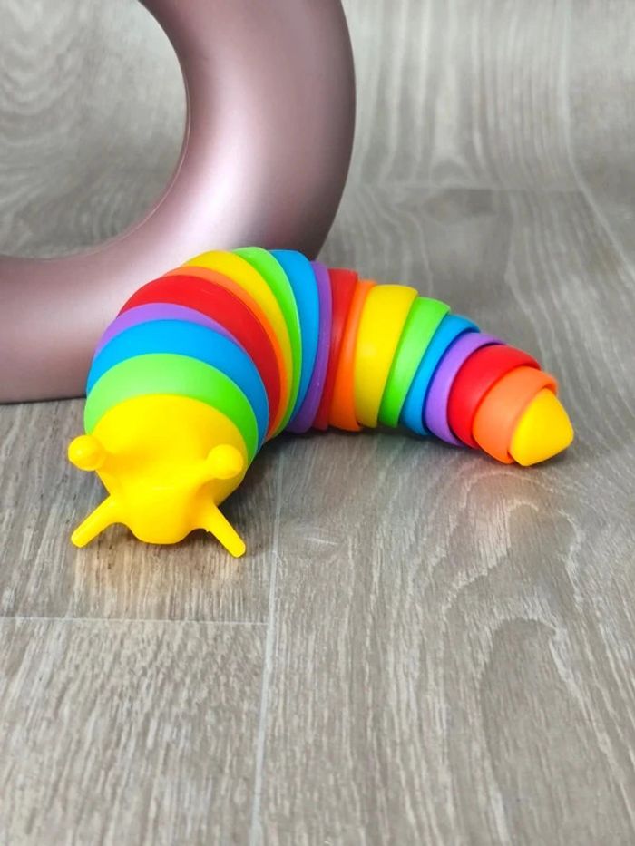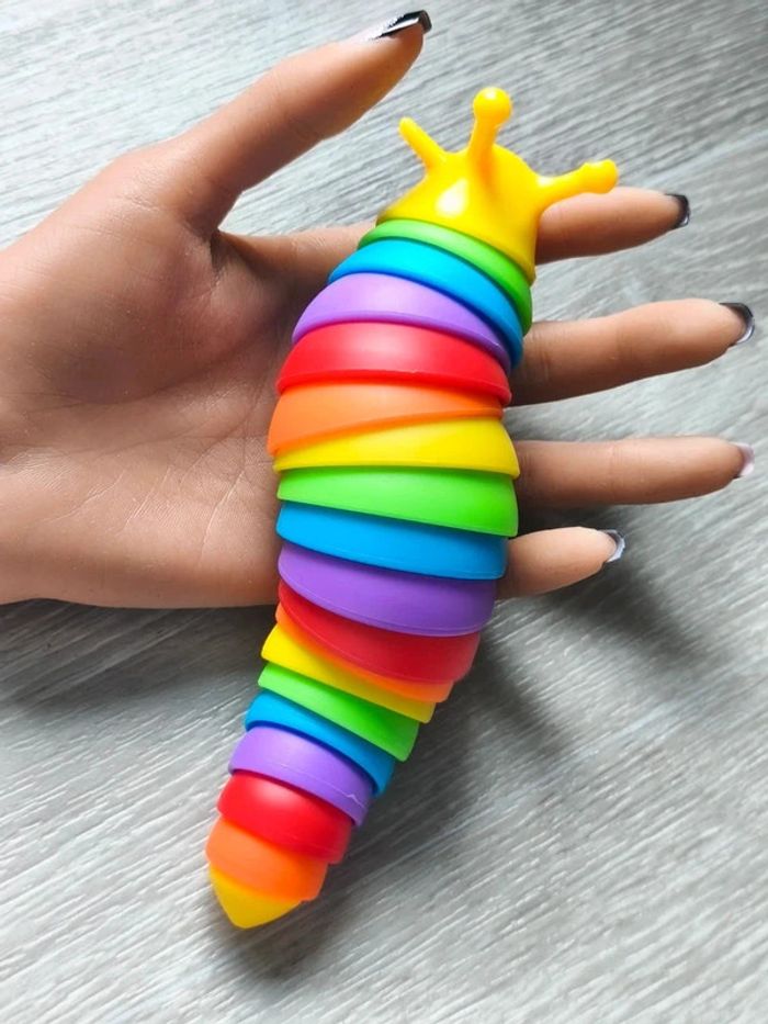 📍Limace articulée arc-en-ciel. 📍Tactile et amusante à manipuler, cette limace très flexible dans votre main et agréable à toucher. 📍Les sons légers qu'on entend quand on la manipule sont relaxants. 📍Cette limace est un jouet sensoriel qui permet de soulager l'anxiété, de se détendre... 📍Ce jouet peut être utilisé en toute sécurité par les enfants. Dimension : 15 à 19 cm 👉Pour trouver d'autres accessoires c'est par ici : 🔎#elisabethDesignSensoriel 📫⏳ Envoi rapide et soigné le jour même de l'achat dans la mesure du possible! 🤝 Frais de port ajusté au plus bas.