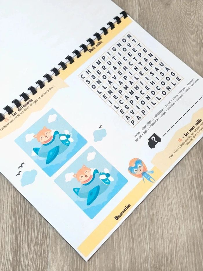 📍Occupez vos enfants lors des longs trajet en voiture, voyages en avion ou par temps pluvieux . 📍Au travers de 20 mini jeux vos enfants pourront travailler leur réflexion, recherche, logique et même leur dextérité au coloriage ! 📍Les activités présentes à l'intérieur du livret sont adaptées pour les enfants entre 6 et 9 ans, vous y trouverez des sudokus, des mots mélés, des coloriages magiques ... Et plein d'autres ! 📍Taille : Format A4. 📍1ère et dernière page de protection pour protéger le livret. 📍Papier 250 G. 📍Relié. 📍Chacune des grilles est composée de 16 mots à trouver et à entourer. 📍Une façon ludique et amusante pour votre enfant d’enrichir et développer son vocabulaire. 📍12 pages d'activités. 📍Neuf. 👉Pour trouver d'autres livrets c'est par ici : 🔎#elisabethdesignLivret 📫⏳ Envoi rapide et soigné le jour même de l'achat dans la mesure du possible! 🤝 Frais de port ajusté au plus bas. Ref : 3#- Livret d'activité