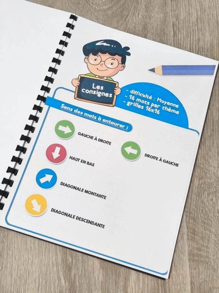 📍Ce livret de difficulté moyenne fera voyager vos enfants (7 à 9 ans) au travers de 20 thèmes différents tel que : l’espace, le moyen-âge, les animaux de la mer, et bien d’autre encore ! 📍Taille : Format A4. 📍1ère et dernière page de protection pour protéger le livret. 📍Papier 250 G. 📍Relié. 📍Chacune des grilles est composée de 16 mots à trouver et à entourer. 📍Une façon ludique et amusante pour votre enfant d’enrichir et développer son vocabulaire. 📍12 pages d'activités. 📍Neuf. 👉Pour trouver d'autres livrets c'est par ici : 🔎#elisabethdesignLivret 📫⏳ Envoi rapide et soigné le jour même de l'achat dans la mesure du possible! 🤝 Frais de port ajusté au plus bas. Ref : 1#- Livret d'activité