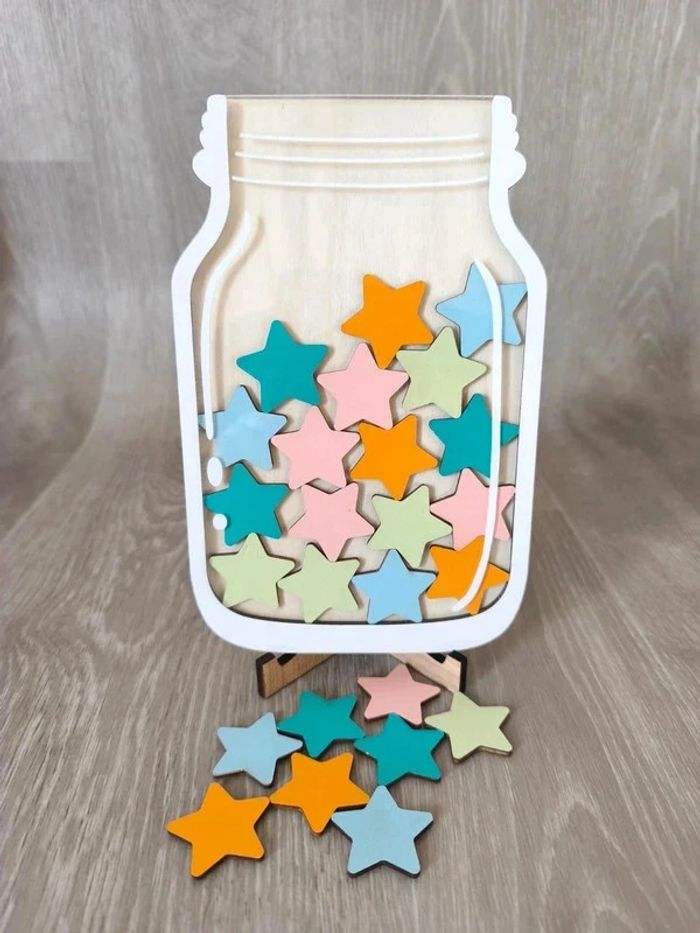 📍Neuf. 📍Ce pot à récompense est le moyen idéal pour motiver et récompenser les enfants lorsqu'ils accomplissent de belles actions au quotidien... 📍Une fois le pot rempli, l'enfant ou les enfants, ont droit à une petite récompense à définir au préalable avec eux. 📍Le pot est en bois et plexiglas. 📍Taille : 14 x 21 cm sans support. 👉Pour trouver d'autres activités c'est par ici : 🔎#elisabethdesignEmotion 📫⏳ Envoi rapide et soigné le jour même de l'achat dans la mesure du possible! 🤝 Frais de port ajusté au plus bas.