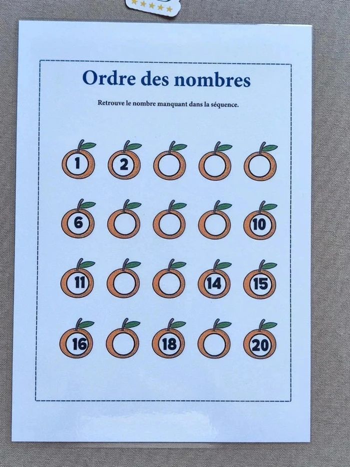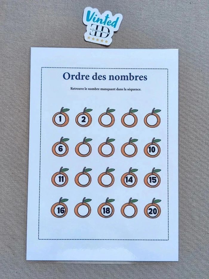 📍Retrouver le nombre manquant de la séquence. 📍Papier 250G. 📍Format A4 plastifié pour une bonne tenue et des écritures à l'infini. 📍Neuf. 👉Pour trouver d'autres activités c'est par ici : 🔎#elisabethdesignCompter 📫⏳ Envoi rapide et soigné le jour même de l'achat dans la mesure du possible! 🤝 Frais de port ajusté au plus bas. Ref: Activité.CF-4#Kinder/p.65