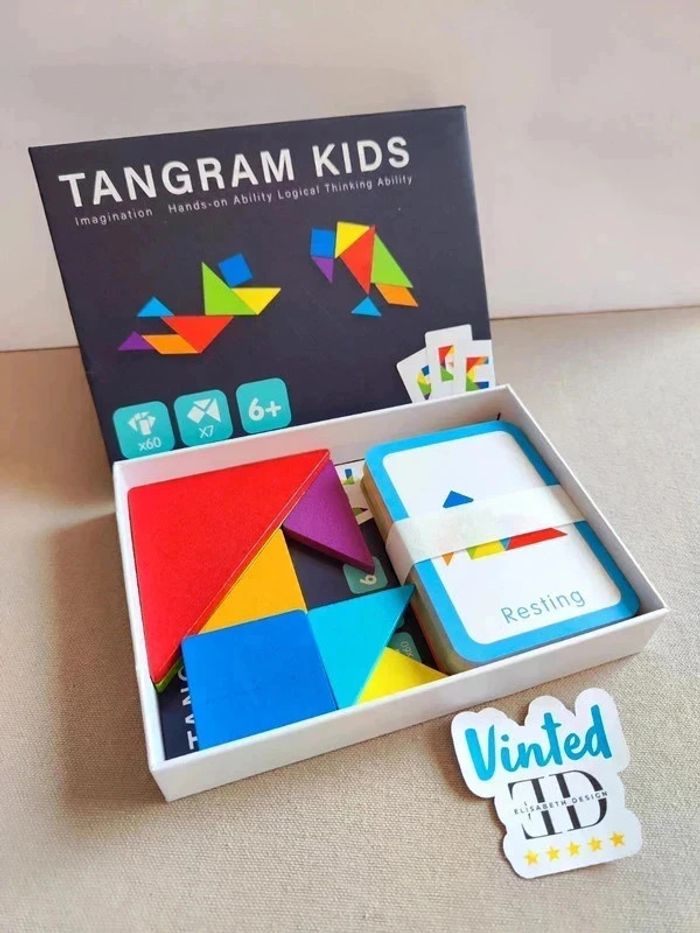 📍Tangram en bois. 📍Neuf ! 👉Pour trouver d'autres activités c'est par ici : 🔎#elisabethdesignMotricitéFine 📫⏳ Envoi rapide et soigné le jour même de l'achat dans la mesure du possible! 🤝 Frais de port ajusté au plus bas.