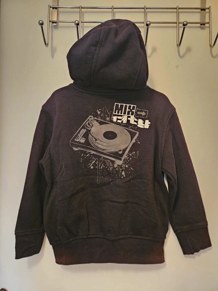 Veste capuche zippé, dessin dans le dos.