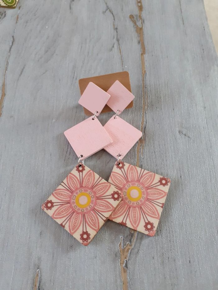 Neuves. En bois. Motifs imprimé que d'un côté. Longueur 10,5cm sur 5cm le large. Envoi rapide et soigné. #wendy_lnr28_bouclesdoreilles