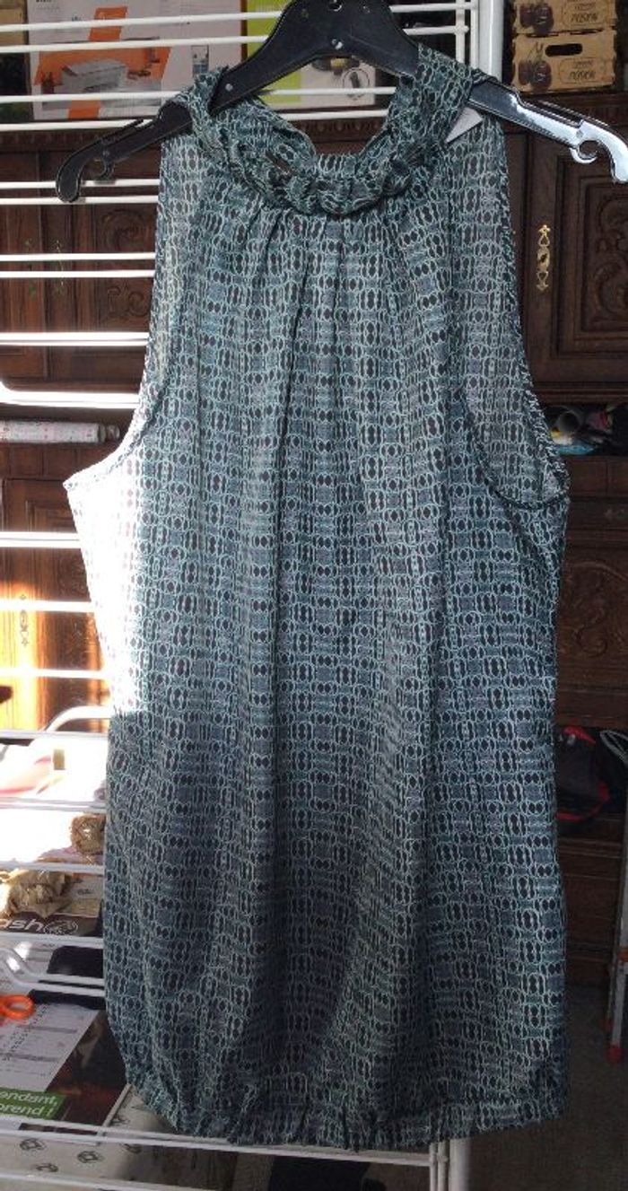 Tee shirt vert camaïeu sans manche, taille 36, 100% polyester. envoi rapide et soigne