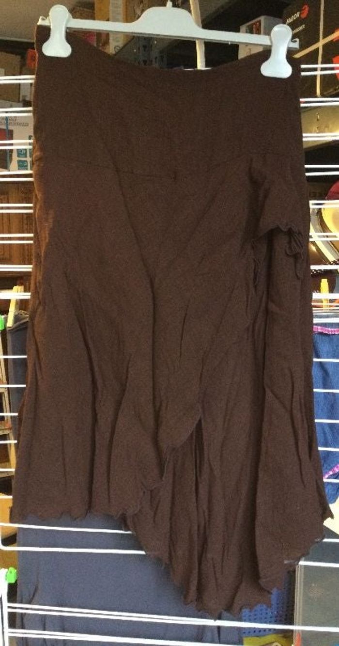 jupe zara woman, marron, taille 42, extérieur: 56%rayonne, 38%lin, 6%nylon, intérieur: 100% polyester, envoi rapide et soigne
