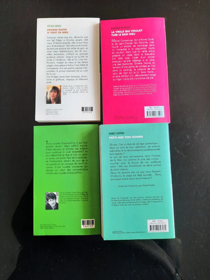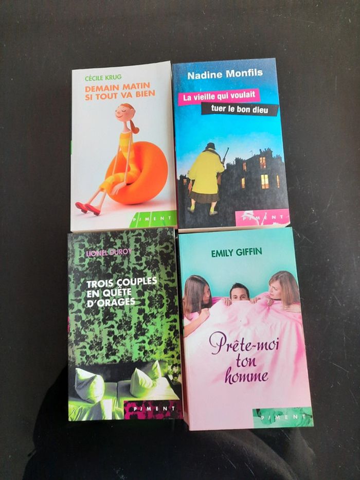 Lot de 4 livres différents Prête moi ton homme bon état Les autres très bon état Demain matin si tout va bien La vieille qui voulait tuer le bon dieu Trois couples en quête d'orages #tatagwenlivres