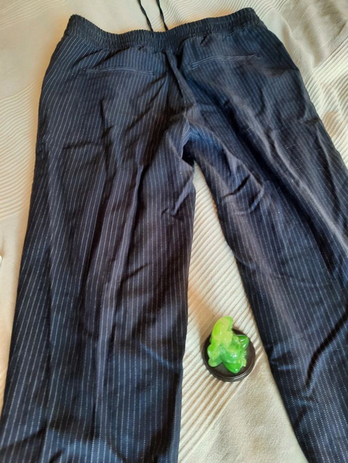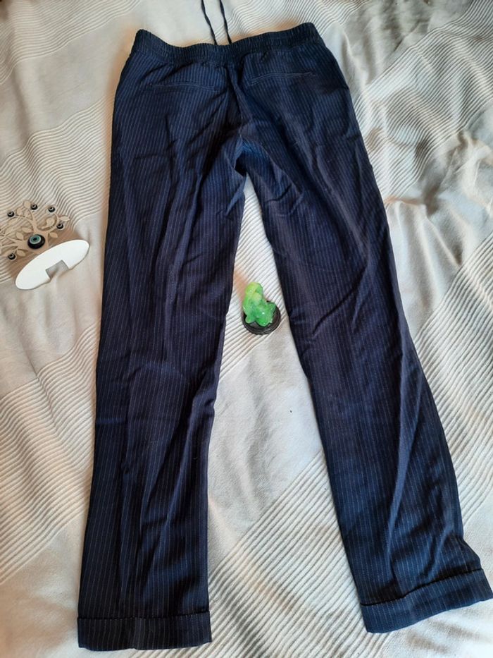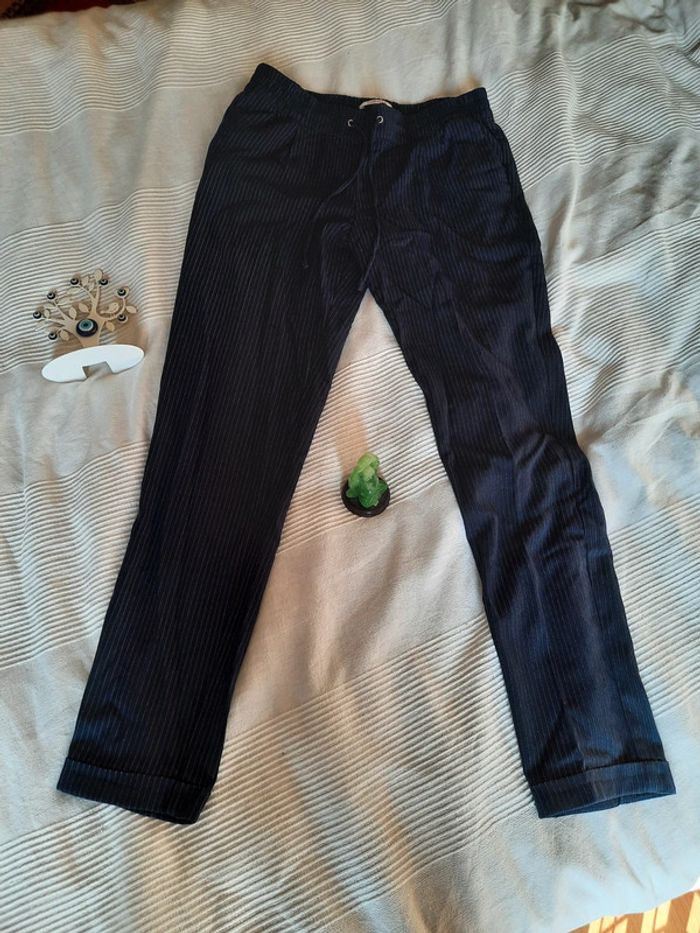 Pantalon bleu rayé blanc habillé camaïeu taille 42