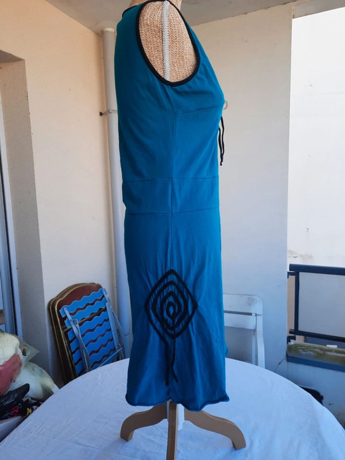 Magnifique robe verte avec dessins noirs taille M/L - photo numéro 3