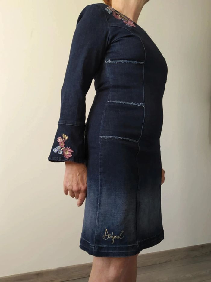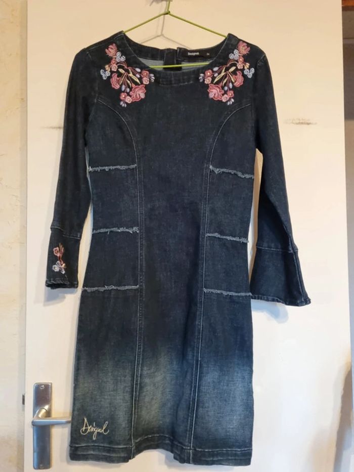 Très belle robe desigual tout en jean avec motif fleuri taille 34 Fermeture avec fermeture éclair au dos #tatagwenxs