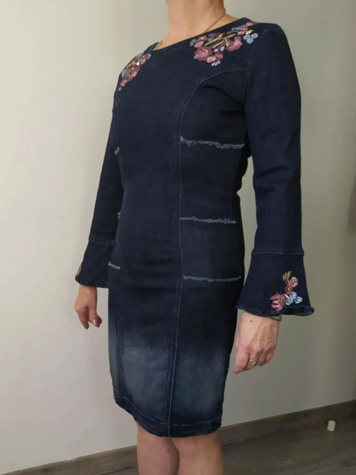 Superbe robe desigual en jean taille 34 motif fleuri - photo numéro 2