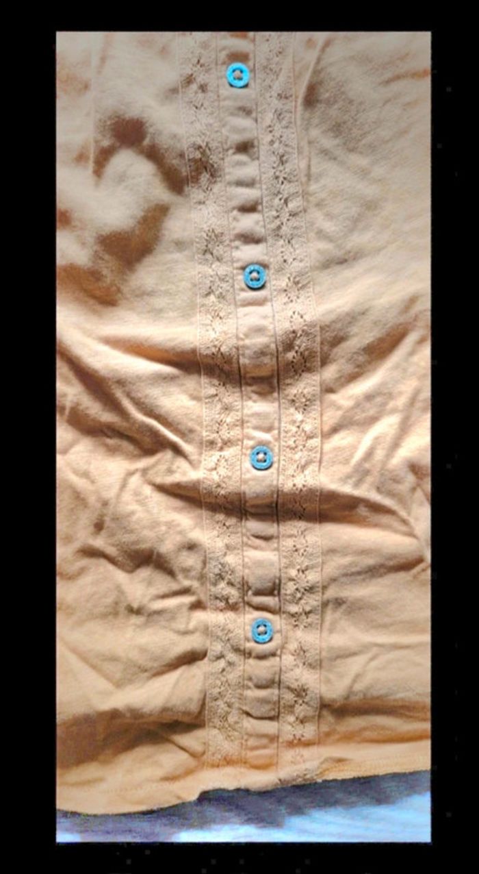 #Mi_laine12ansfille #taofille Débardeur de coloris jaune moutarde. Haut ample Petits motifs broderies que l on retrouve sur les bretelles et sur le milieu du haut. De petits boutons coloris argentés en motifs. Vetement premiere main et réduction automatique dès le 2eme article