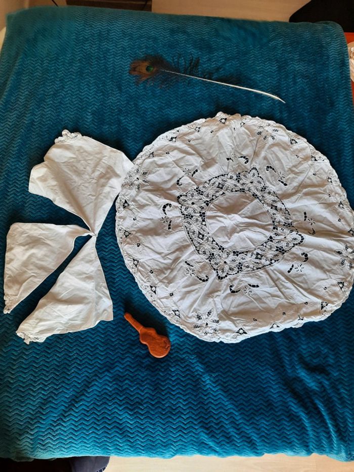 Joli lot napperon plus 4 serviettes avec dentelles - photo numéro 1