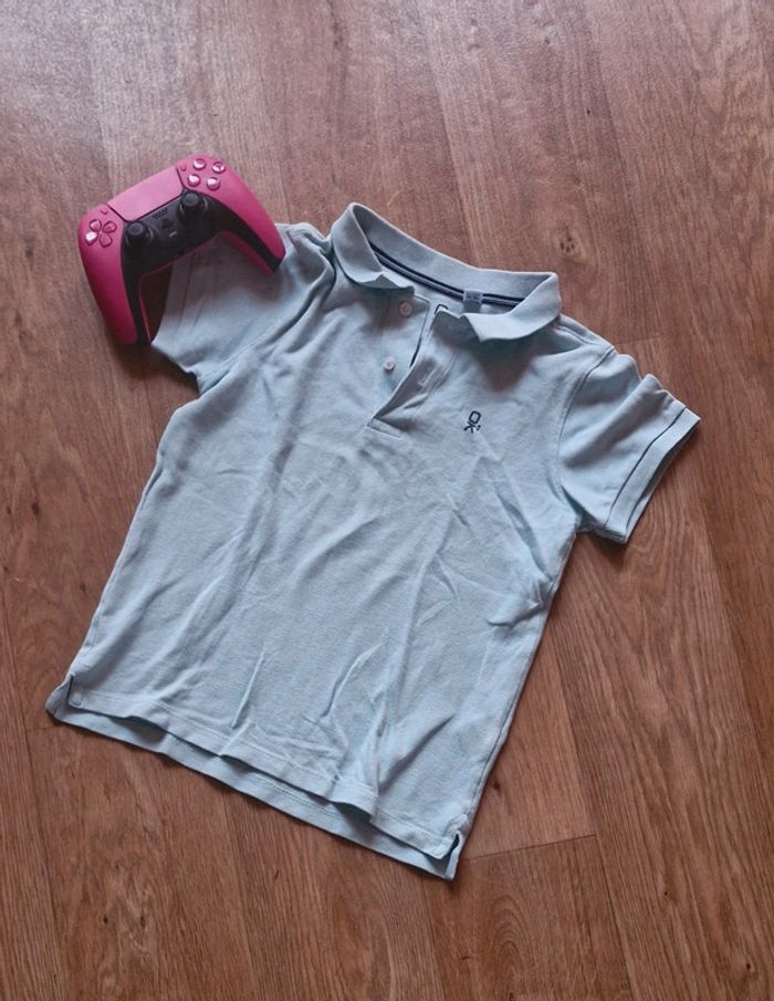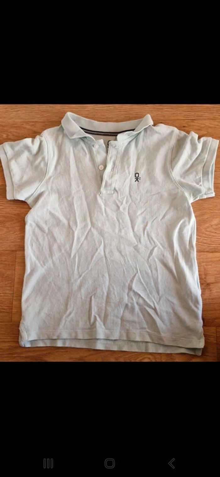 #Mi_laine8ans Polo manches courtes avec son petit col de coloris bleu ciel. 2 boutons sur le haut. Logo de la marque du haut sur le devant.