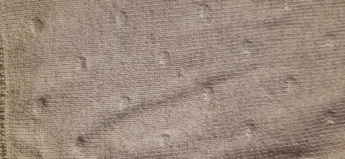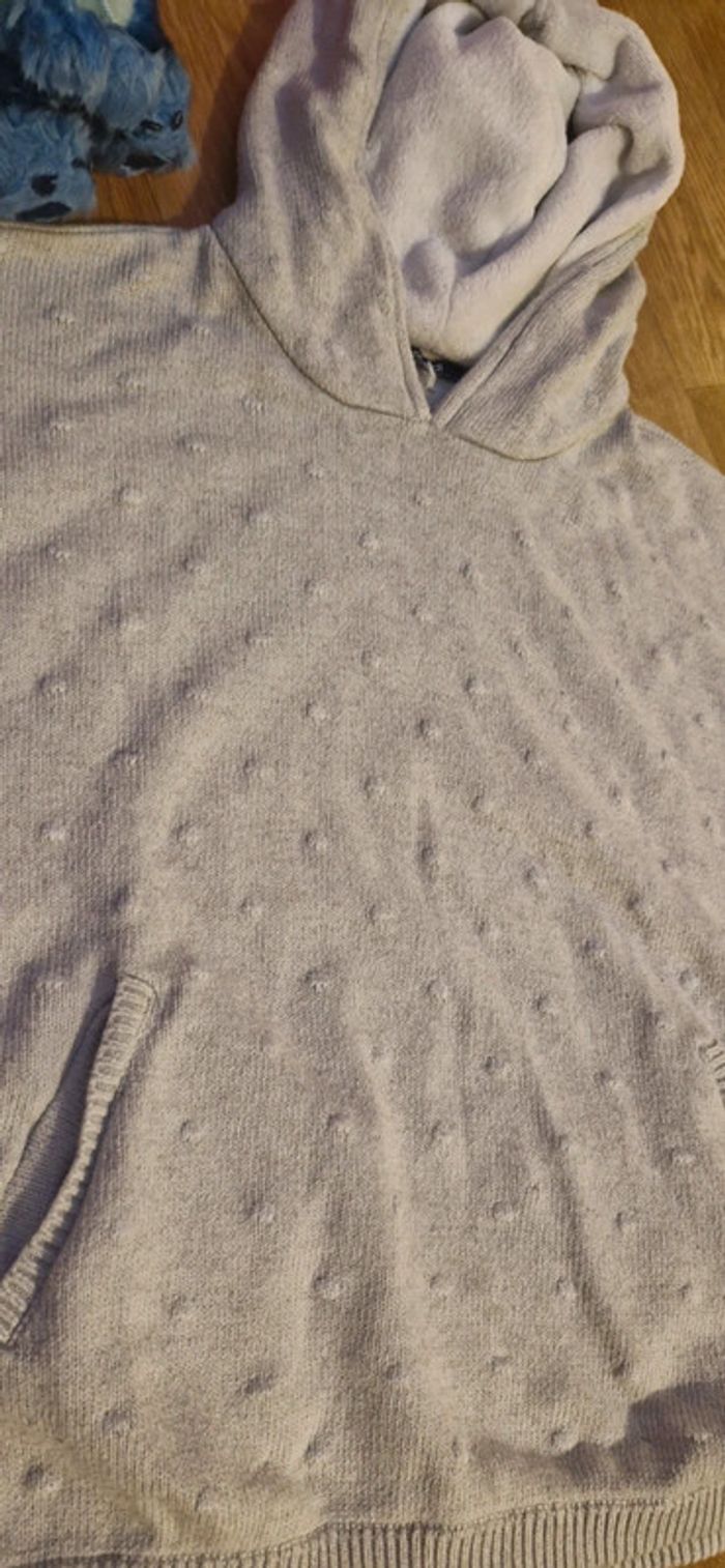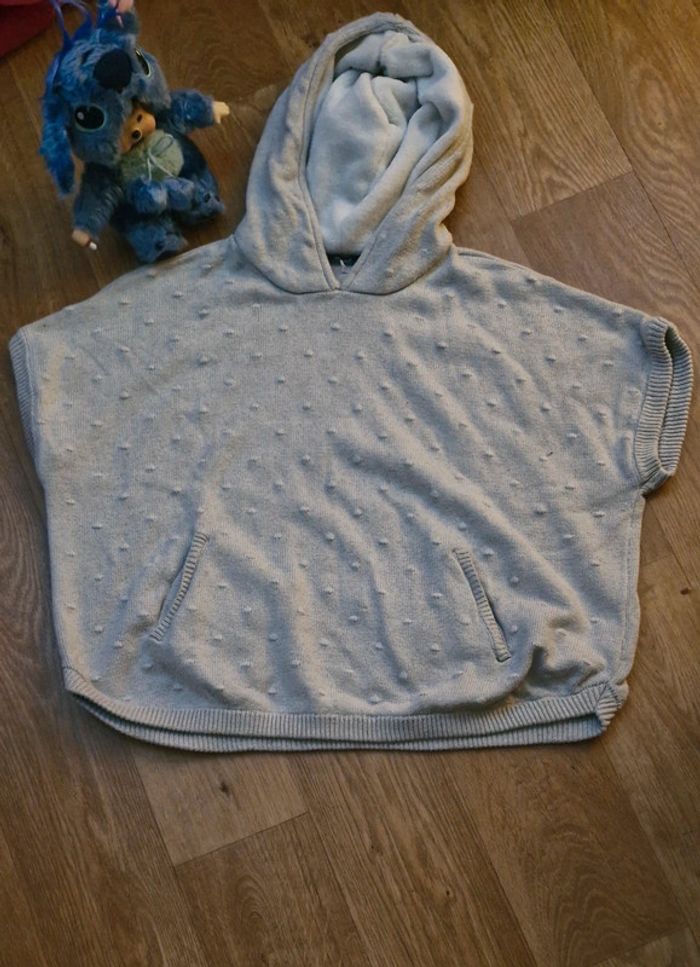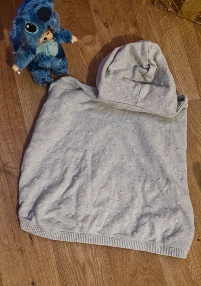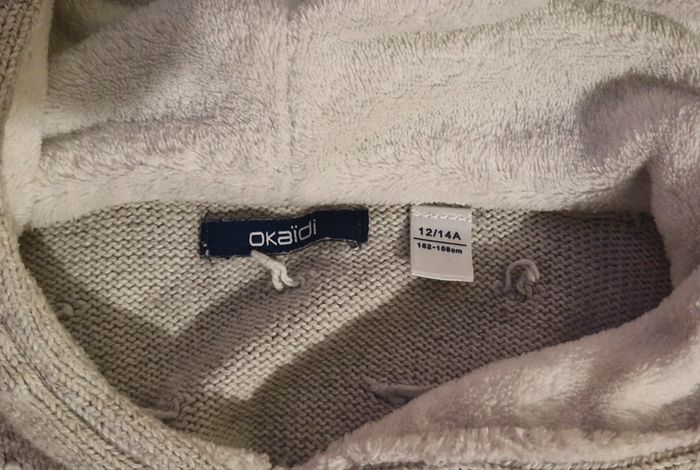 #Mi_laine12ansfille #Mi_laine14ansfille Pull façon laine à capuche. Sans manches. Possède une capuche fourrée blanche à l interieur et seulement dans la capuche. Possède 2 poches. De coloris crème avec les points "tachetés" blanc. 2/3 petit défaut couture dans les motifs, datant de la fabrication et très très peu visible (voir photo). Design façon poncho mais vetement bien fermé autour du buste. Très légèrement bouloché (voir photo). De taille 12/14 ans ( 152/158cm ) Réduction active dès 2 articles.