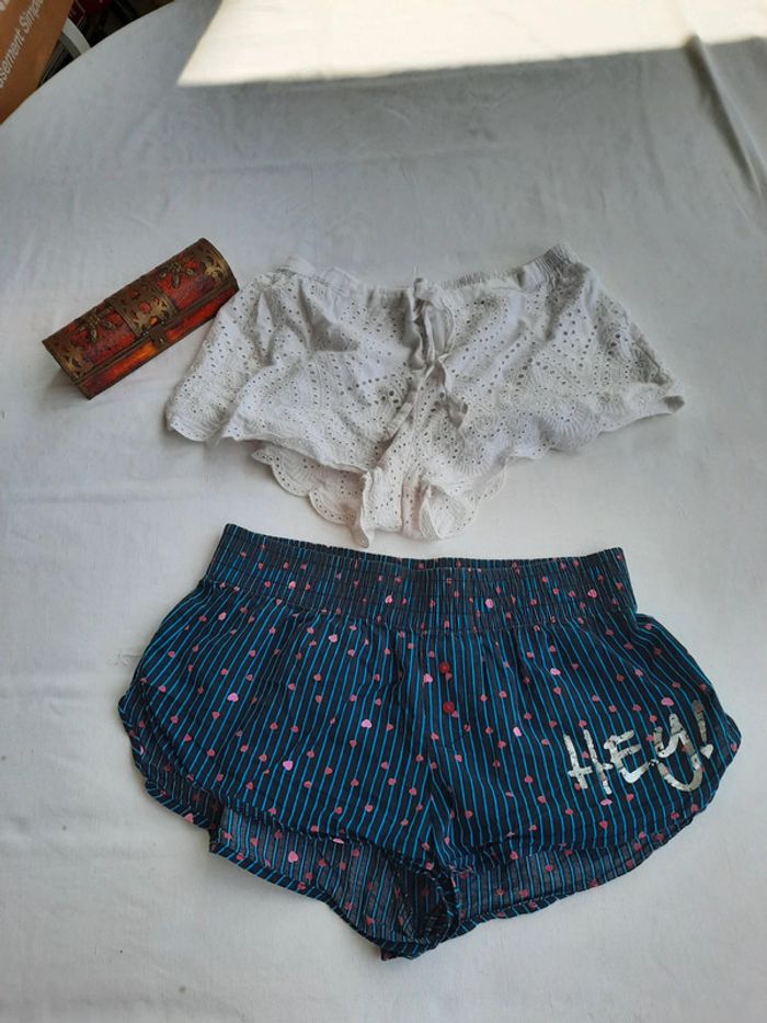 Un short blanc à dentelles transparent etam taille S Un short bleu noir et petits cœurs roses undiz taille S Réductions sur les lots activées hésitez pas à me demander des prix #tatagwens