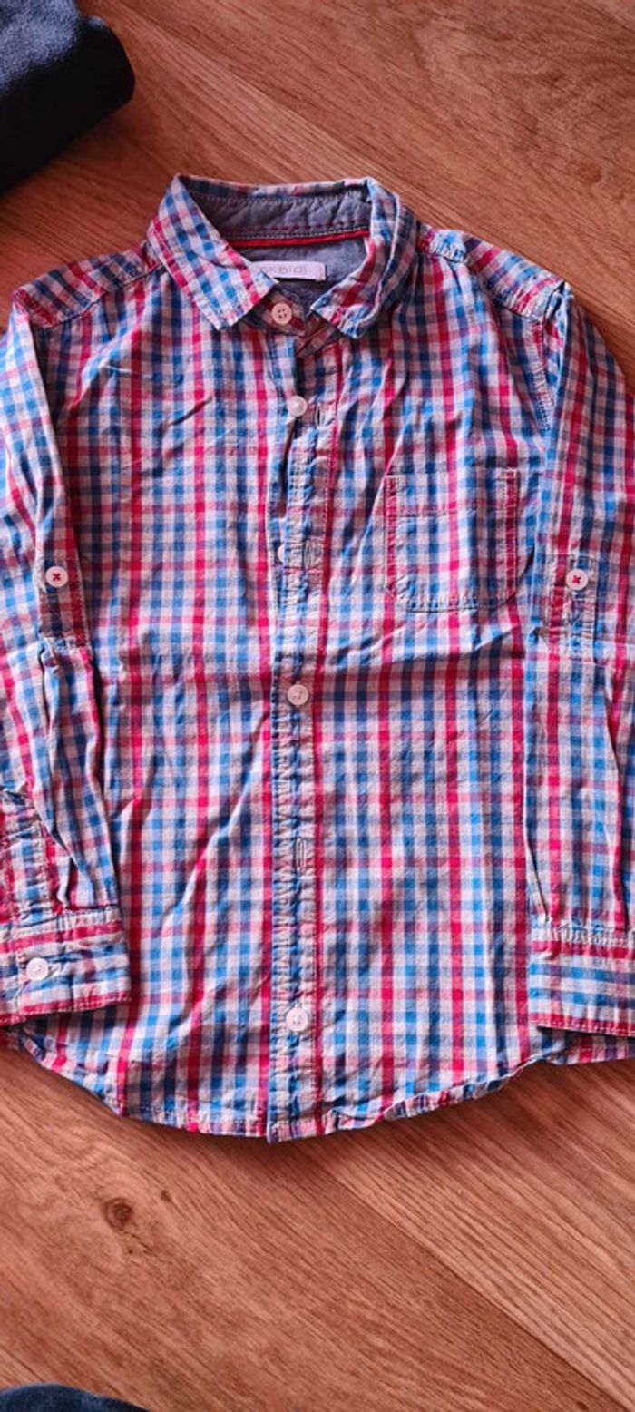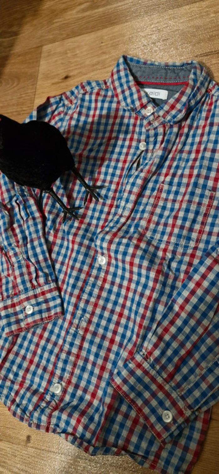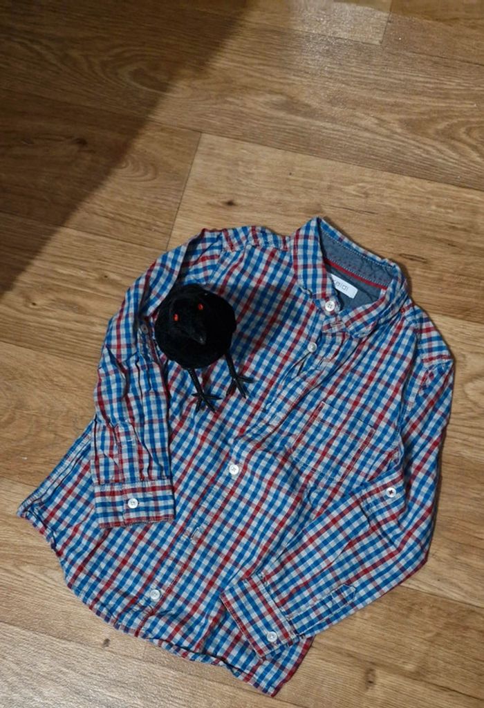 Chemise fine manche longue. Motif petits carreaux De coloris gris,bleu et rouge.