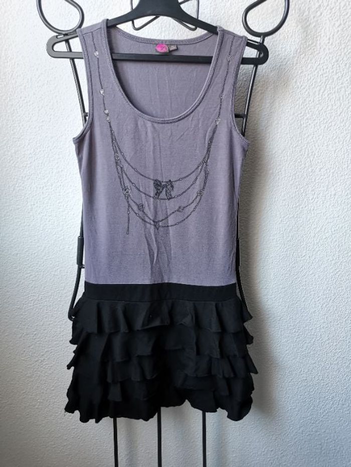 Robe sans manche avec un haut gris et le bas à volants noir de la marque CIL K Taille 12ans