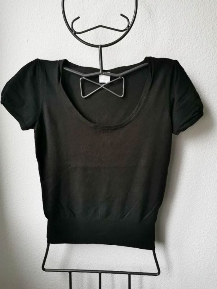 Pull noir à manches courtes avec un col rond de la marque CAMAIEU Taille 38