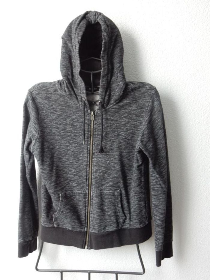 Cardigan zippé gris/noir à capuche de la marque JENNYFER Taille M