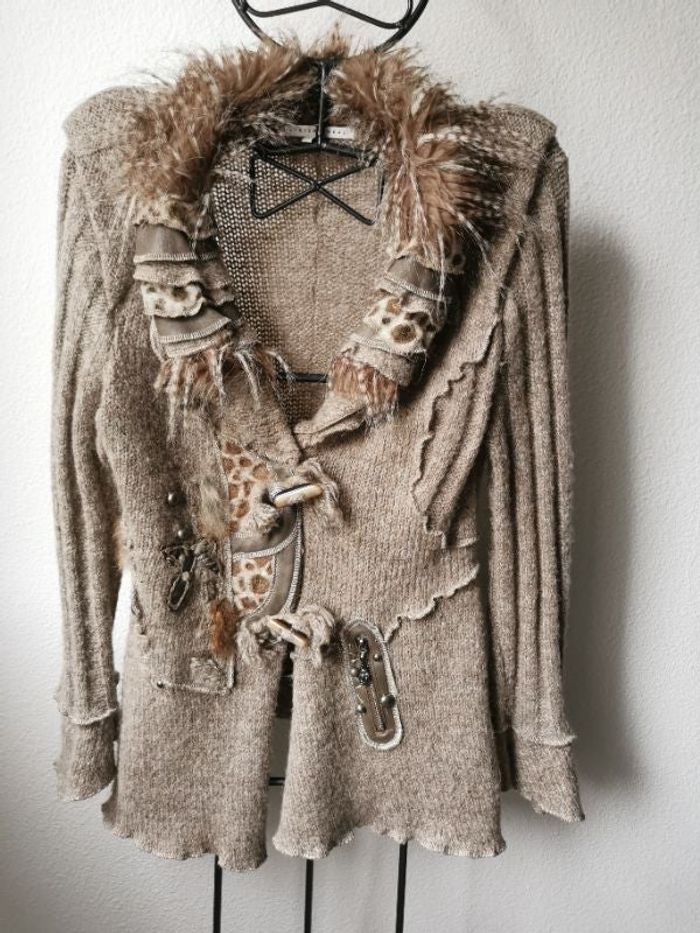Gilet/Veste marron/taupe cintrée avec un col en fourrure synthétique de la marque BREAL Taille 3