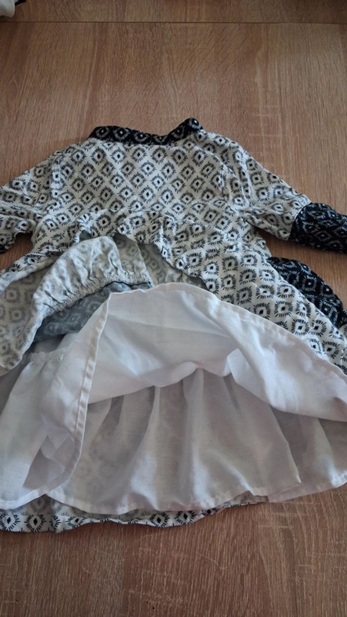 Mon coup de cœur, cette jolie robe blanche et noir 9 mois Orchestra. Tissu adapté pour le printemps.