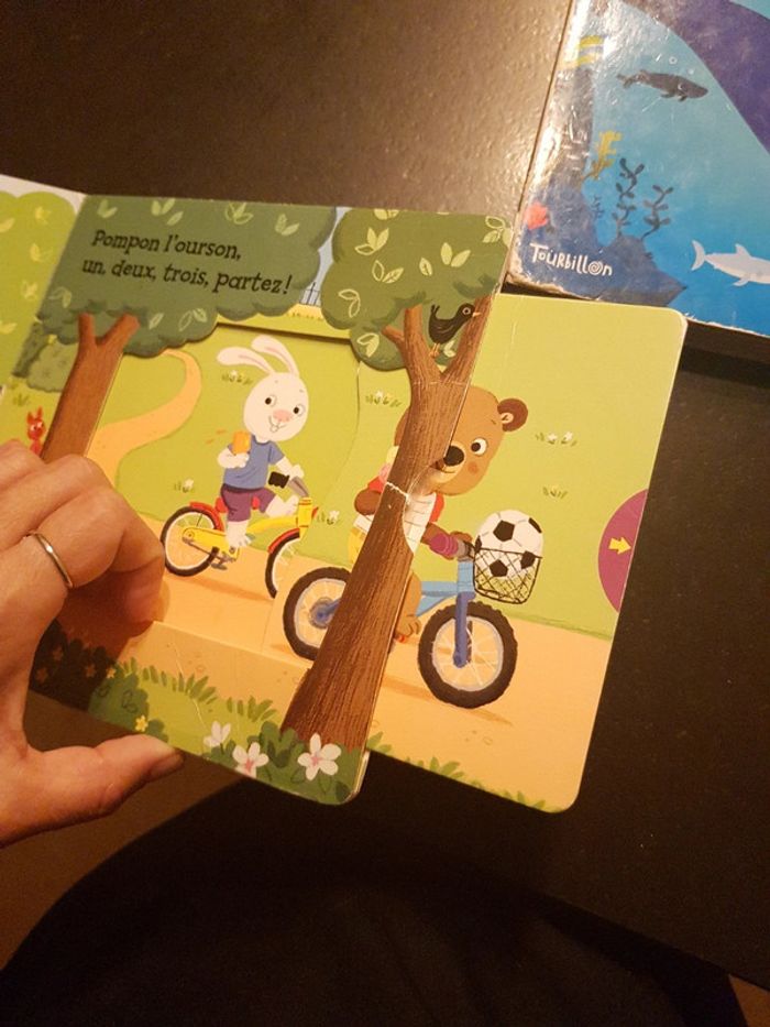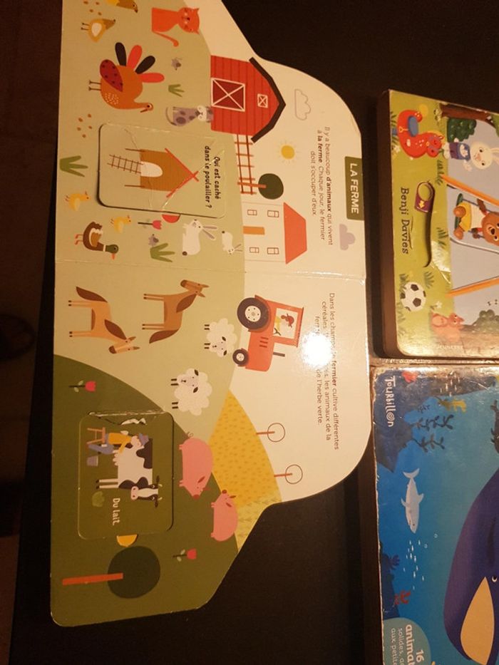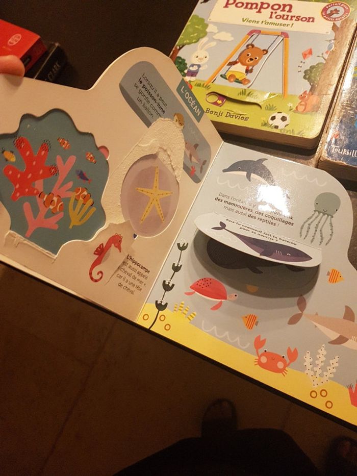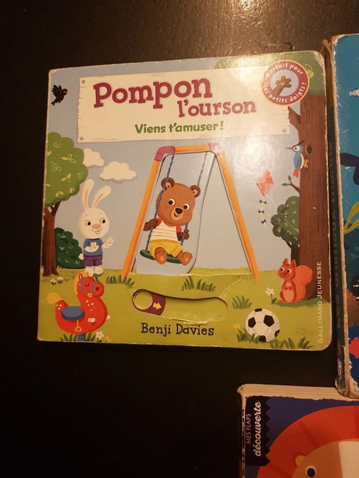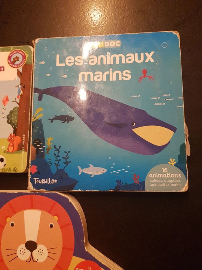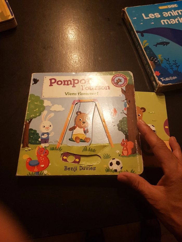 ils ne sont pas en super état mais peuvent encore plaire a un enfant 3 livres a flaps benji Davies Pompon l'ourson les animaux marins anim'doc, 2 animations HS les animaux chez Auzou mes flaps decouverte rafistolé mais 2 flaps HS #ddbooksenfant