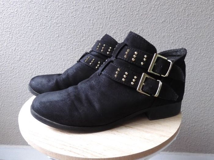Bottines noires plates avec des sangles fantaisie de la marque MIM Pointure 37
