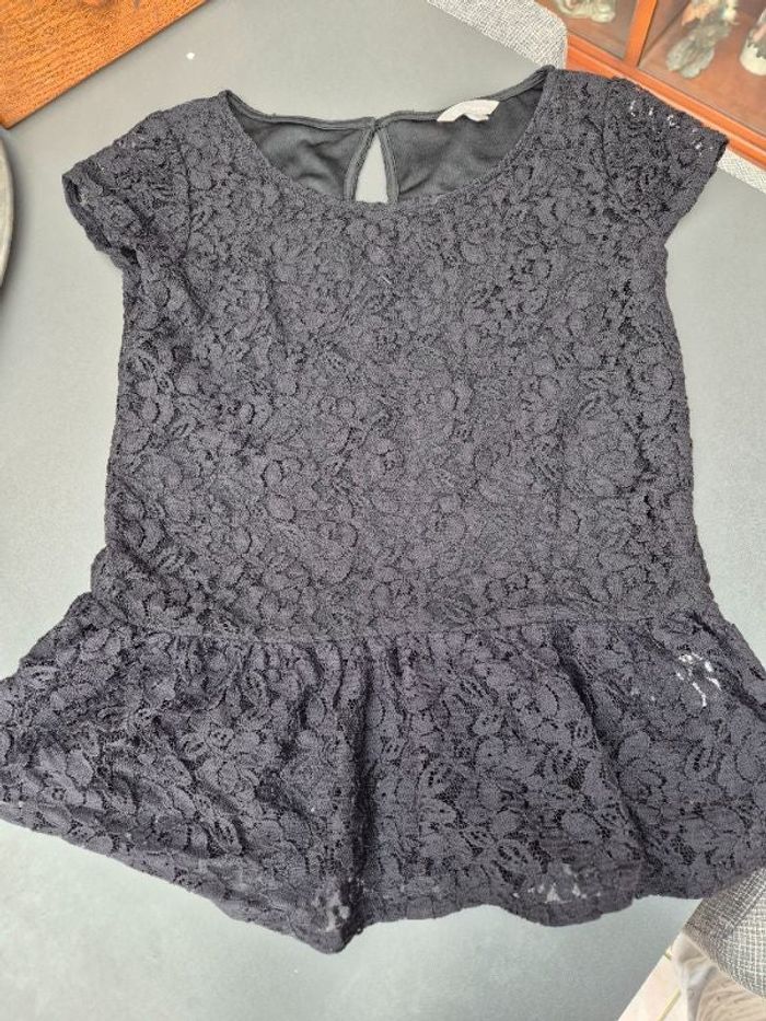 T-shirt à dentelle taille 38, couleur noir, marque Tout Simplement, en bon état. #mode #élégance #occasion
