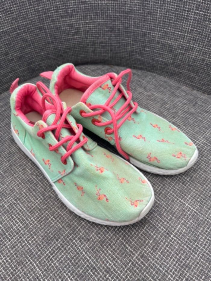 Baskets pointure 35 Couleur vertes et roses Beaucoup portées www.lesfantaisiesdepimprenelle.com