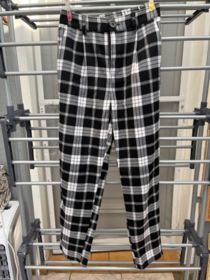 Pantalon à carreaux noir et blanc Kiabi taille 12 ans