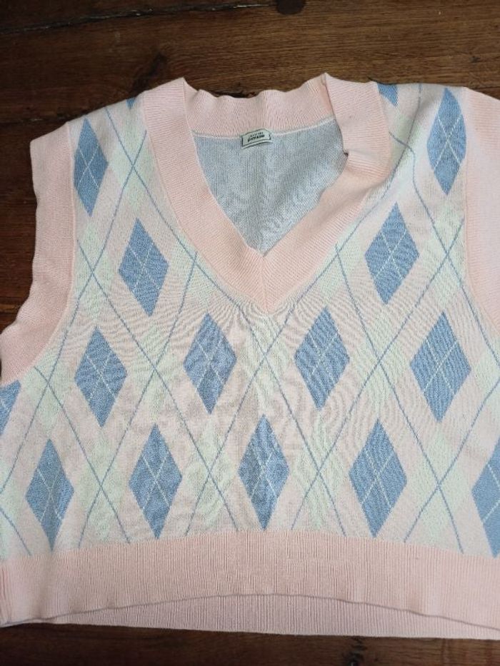 Pull sans manches col en v, A porter par-dessus une chemise... ou pas. Micro defaut presque imperceptible voir la photo Faites un lot et bénéficier jusqu'à cinquante pourcent de réduction!!!